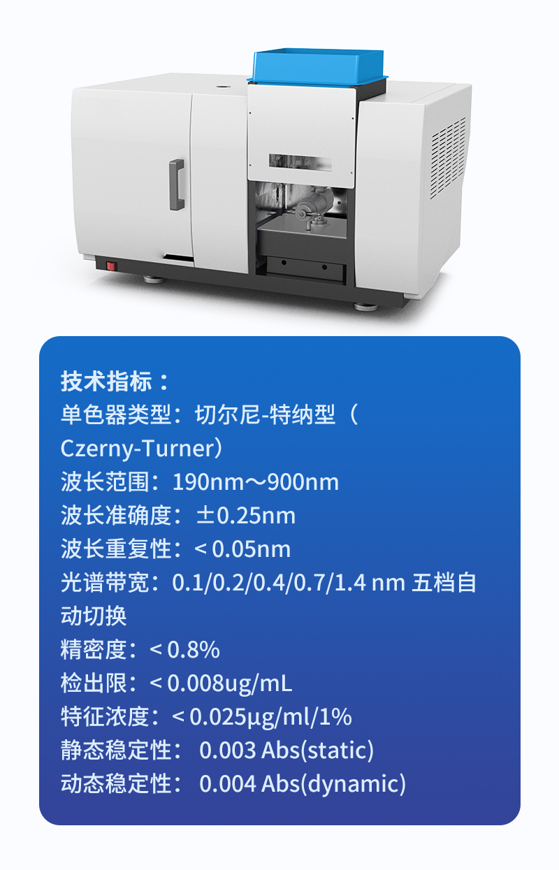 元素?zé)艉碗疅綦p重切換和背景扣除,具備氘燈與自吸收兩種背景校正模式,背景信號(hào) 1A 時(shí),扣背景能力 50 倍以上。