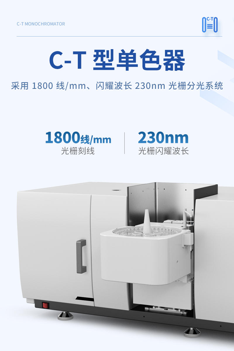 采用 1800 線/mm、閃耀波長(zhǎng) 230nm 光柵分光系統(tǒng)。