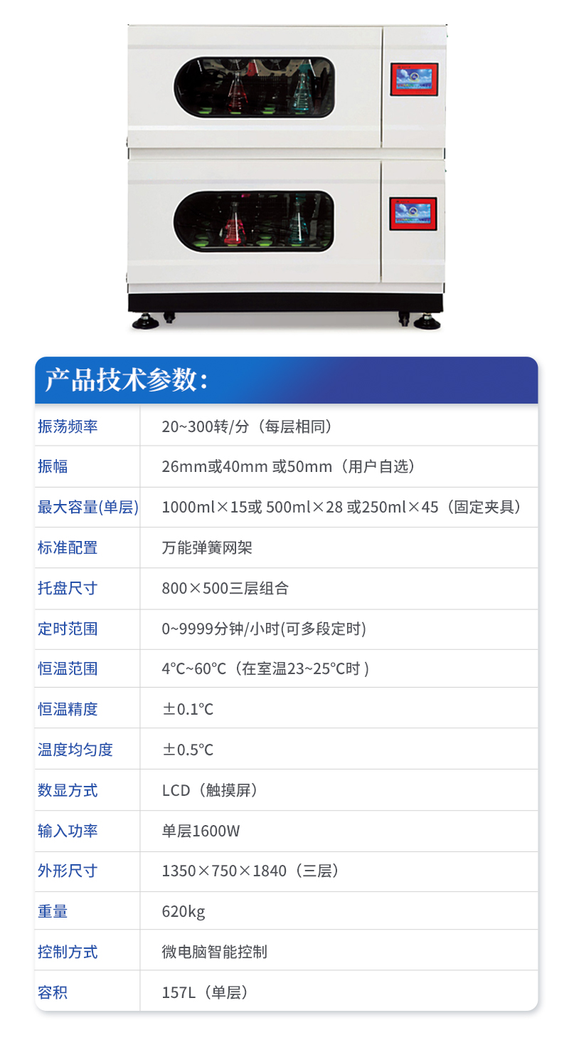 【產(chǎn)品簡介】雙層疊式恒溫振蕩搖床人性化可視操作界面,溫馨易懂,全程低壓安全控制,安全呵護(hù)更到位,可開合式換氣系統(tǒng),換氣補(bǔ)氧想有就有,高亮鏡面內(nèi)膽,除菌更輕松。