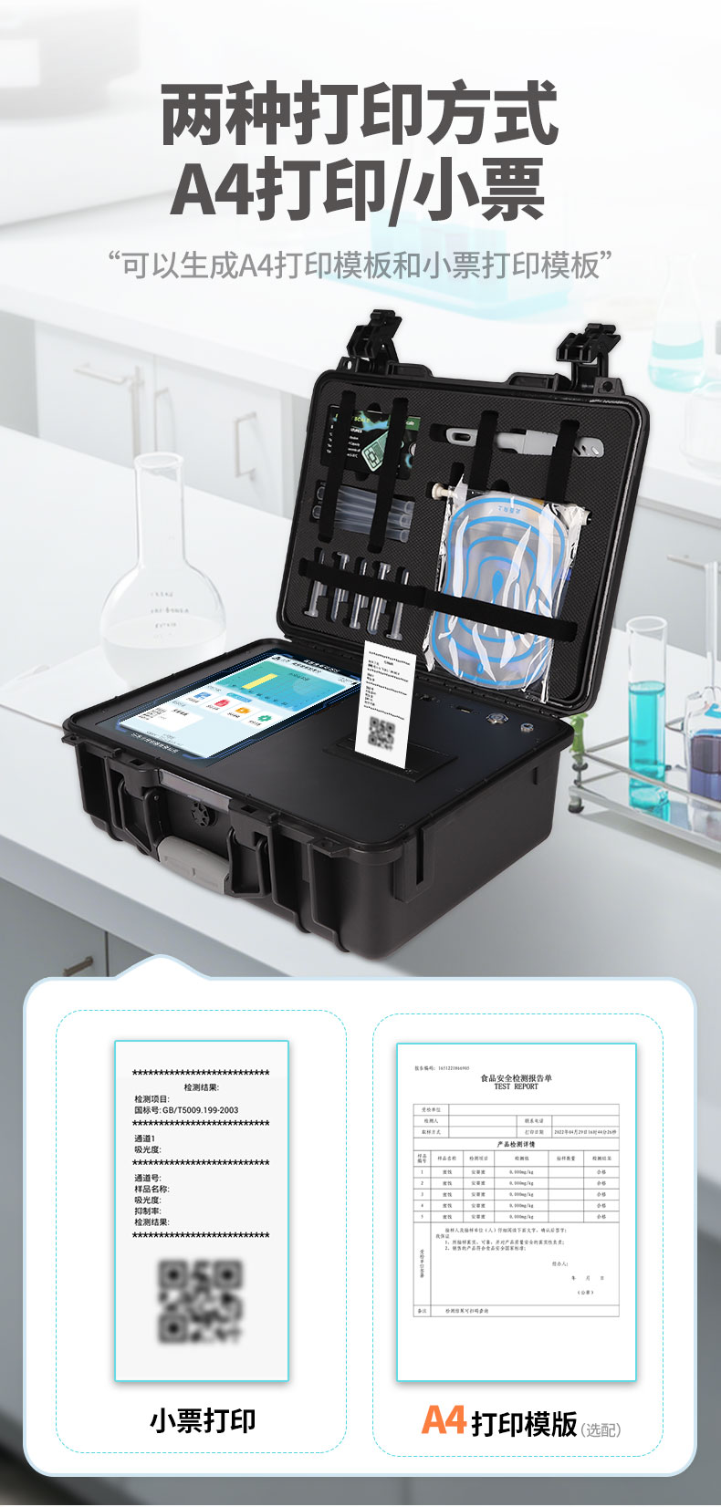 3、一體化便攜式快檢設(shè)備,采用交直流兩用供電方式,可連接車載電源,配備6ah大容量充電鋰電池,可以滿足現(xiàn)場及流動檢測使用的需求。儀器尺寸:43×35×20cm, 主機凈重:5.1kg