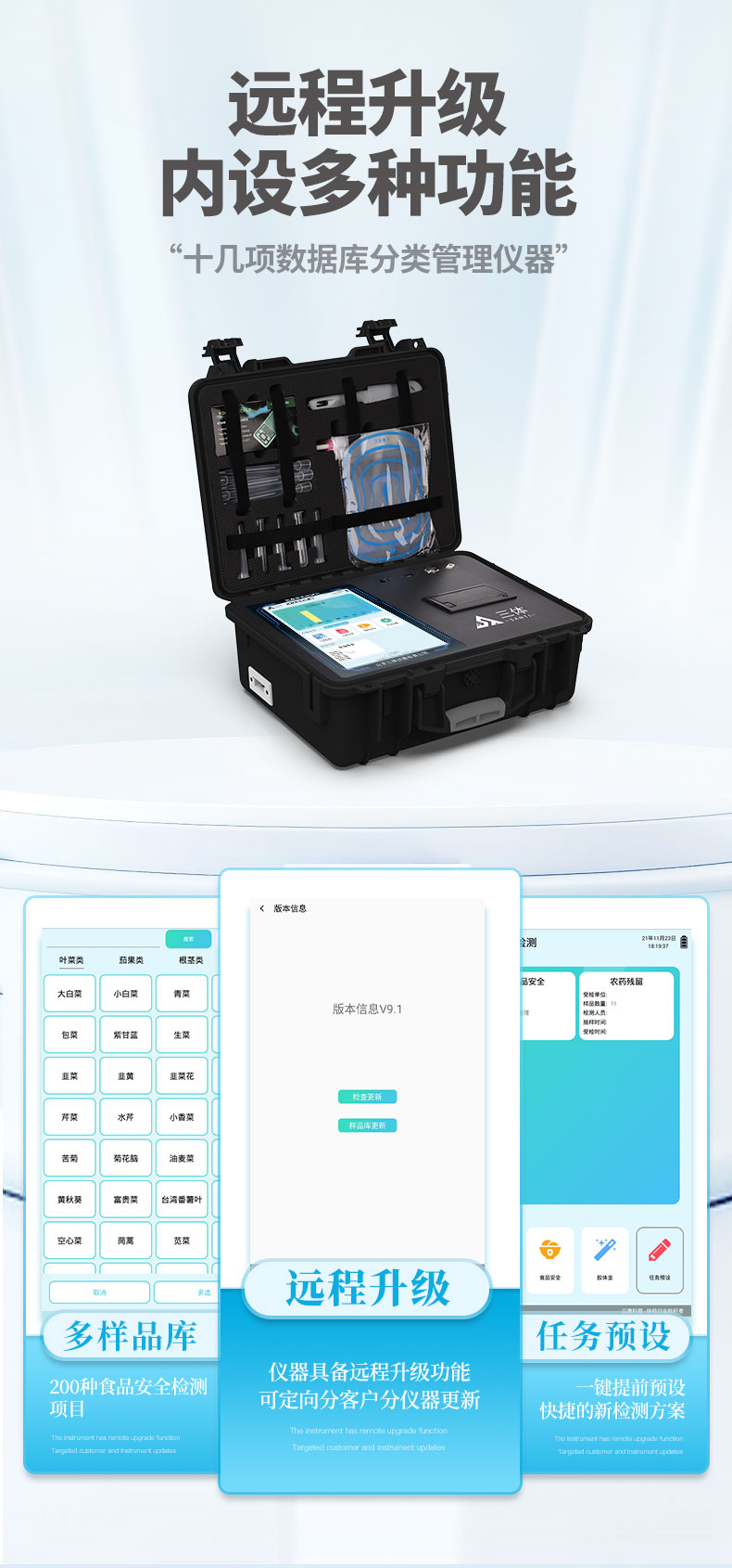 13、儀器具備遠程升級功能,可定向分客戶分儀器更新,開機后自動更新,并可持續(xù)性免費更新系統(tǒng)版本,無需像傳統(tǒng)產(chǎn)品返廠更新,節(jié)省時間及人力成本并避免了物流運輸返廠升級導致設(shè)備損壞的潛在風險。
