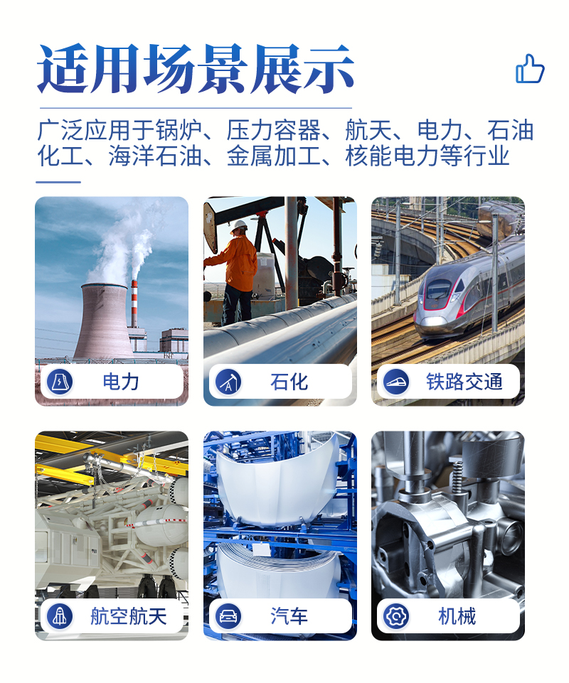 超聲波探傷儀器能夠便捷、準(zhǔn)確地進(jìn)行工件內(nèi)部多種缺陷如裂紋、焊縫、氣孔、砂眼、夾雜、折疊等的檢測(cè)、定位、評(píng)估及診斷,廣泛應(yīng)用于電力、石化、鍋爐壓力容器、鋼結(jié)構(gòu)、航空航天、鐵路交通、汽車、機(jī)械等領(lǐng)域。它是無(wú)損檢測(cè)行業(yè)的儀器。