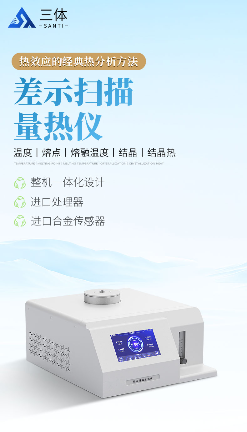 測量與熱量有關(guān)的物理、化學變化,如玻璃化轉(zhuǎn)變溫度、熔點、熔融溫度、結(jié)晶與結(jié)晶熱、相轉(zhuǎn)變反應(yīng)熱,產(chǎn)品的熱穩(wěn)定性、固化/交聯(lián)、氧化誘導期等。